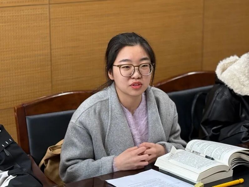 接下来,学生研究员刁雯结合学习体会分享了两点心得:一是“全部社会生活在本质上是实践的”,需以唯物史观指导现实问题分析;二是群众史观启示我们尊重历史规律,同时发挥主观能动性,推动社会进步。