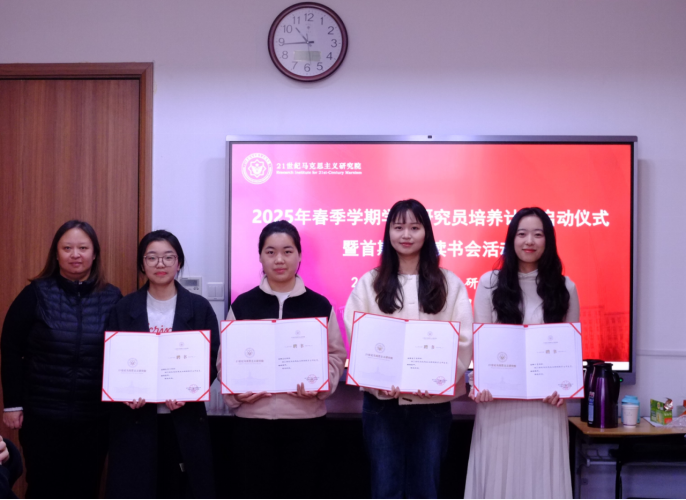 代晓妍指出,崔书记对学生研究员提出的三点希望,为进一步落实好研究院探索培养马克思主义理论后备人才指明了方向。并表示未来将以《2025春季学期学生研究员培养计划表》为抓手,继续扎实做好研究员培养工作。启动仪式上,胡颖欣为刁雯、潘子檬、詹妮、赵晨宁四位实习学生研究员颁发转正聘书。