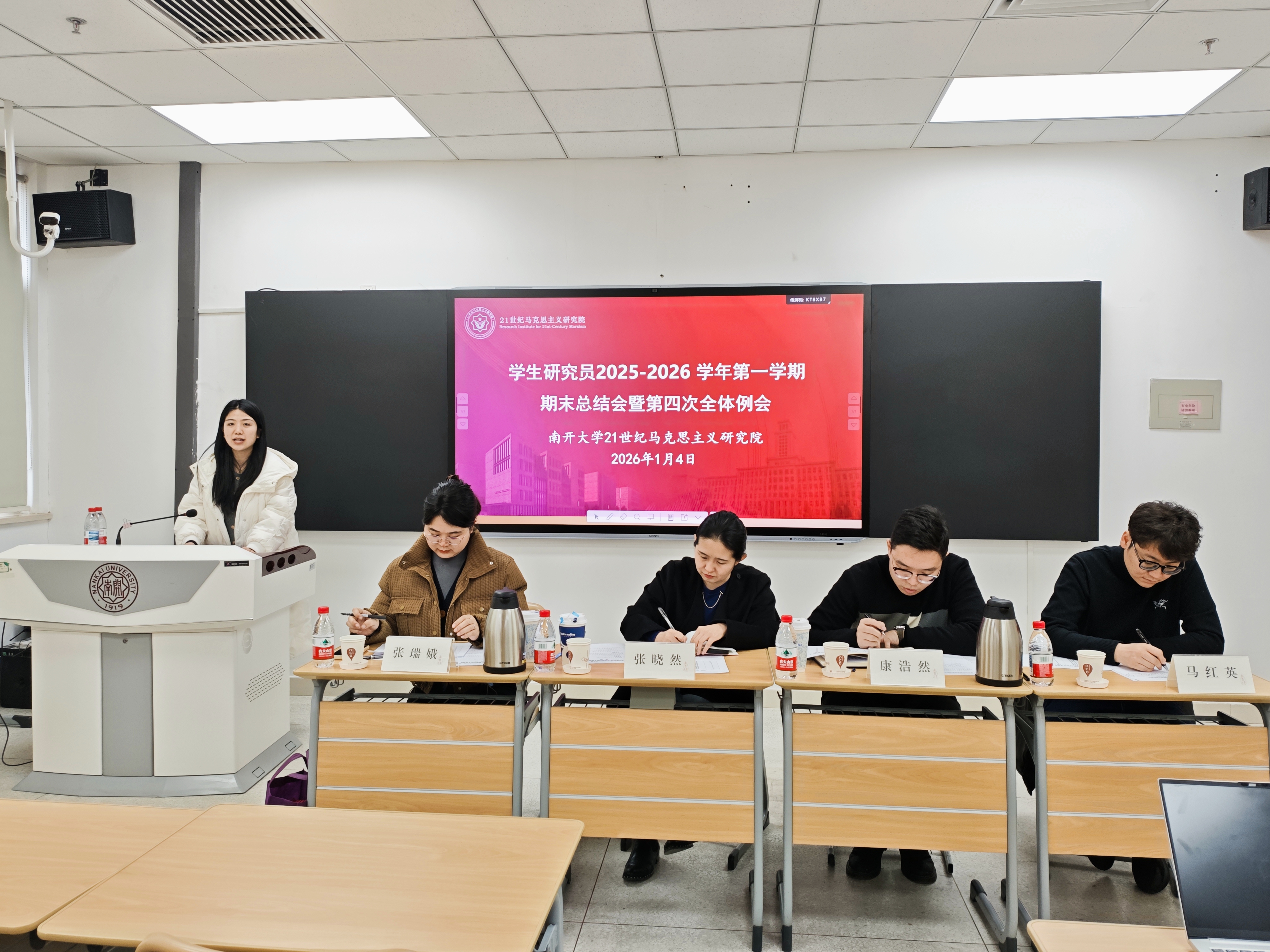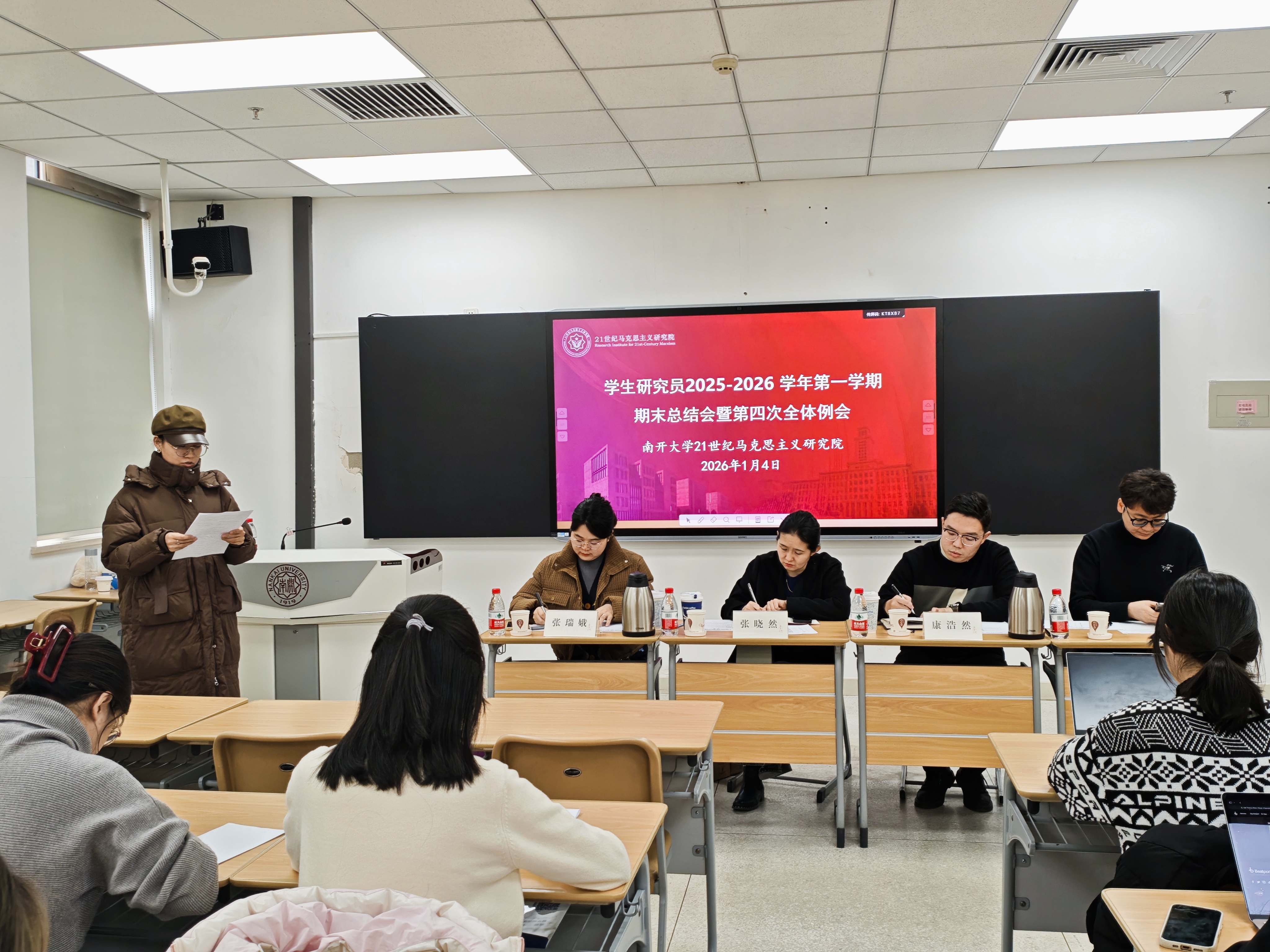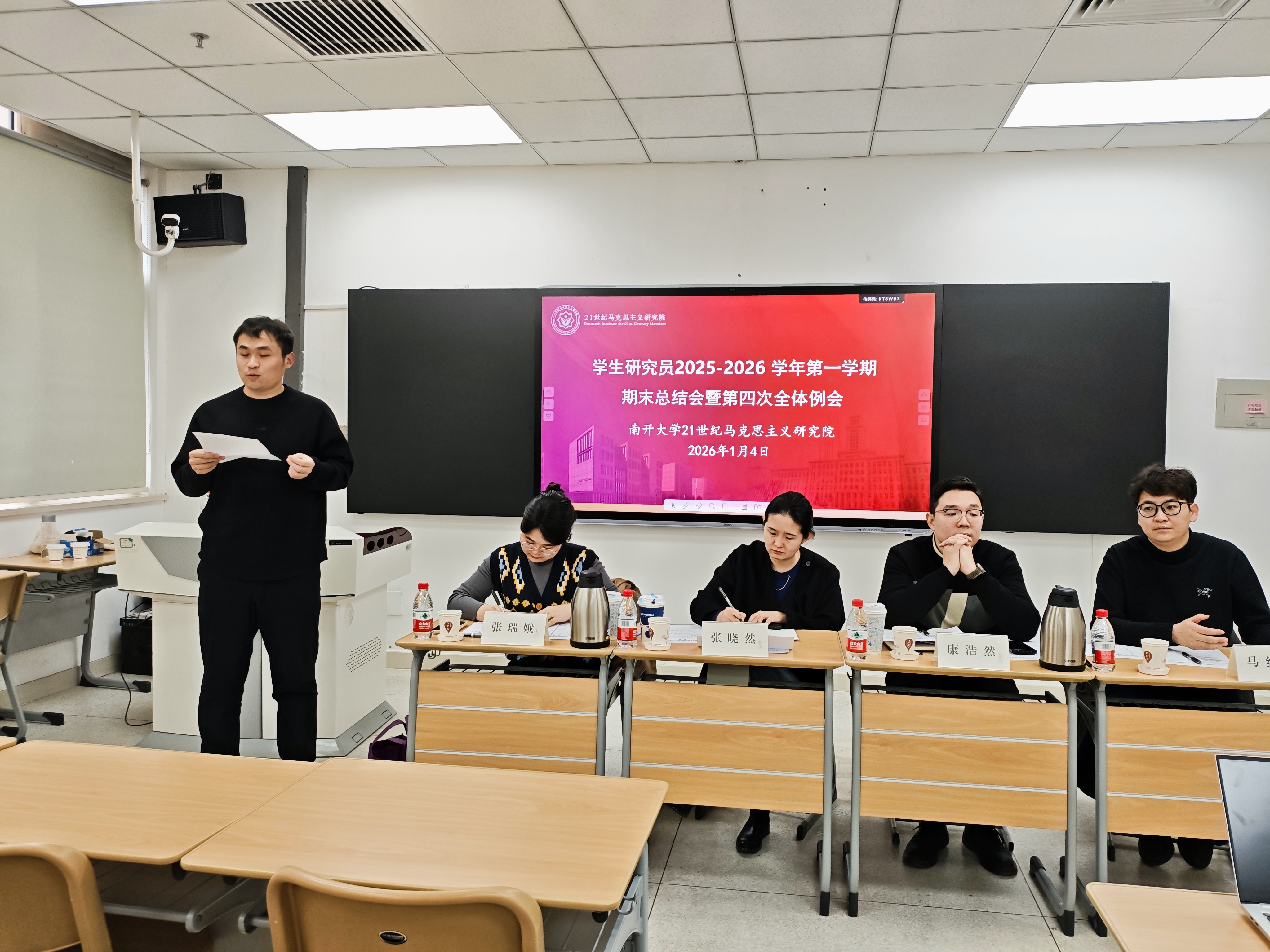 2026年1月4日,21世纪马克思主义研究院2025-2026学年第一学期末学生研究员期末总结会暨第四次全体例会在马克思主义学院召开。学生研究员指导教师张晓然、康浩然、张瑞娥出席会议,全体学生研究员参会,首席学生研究员马红英主持会议。