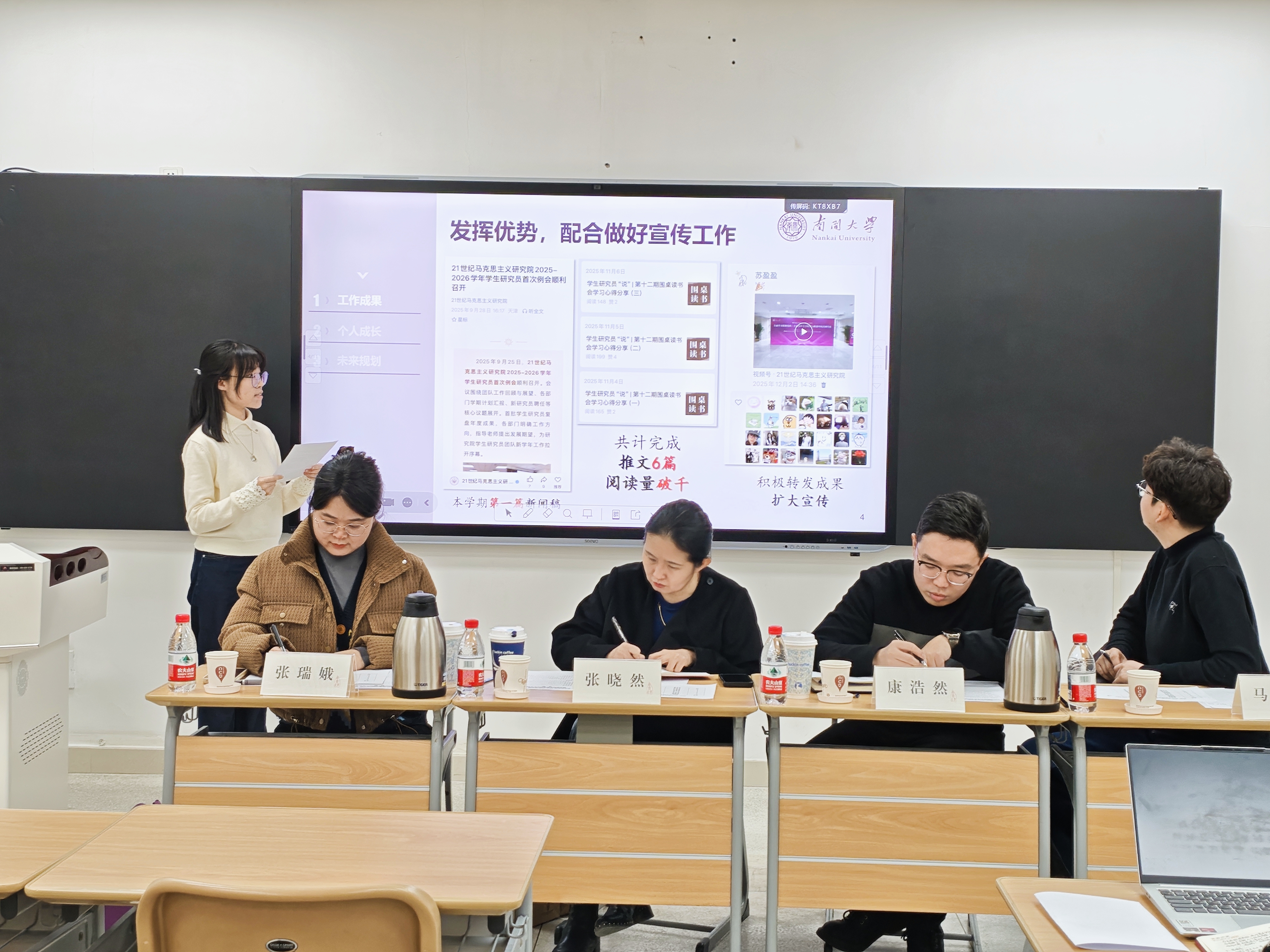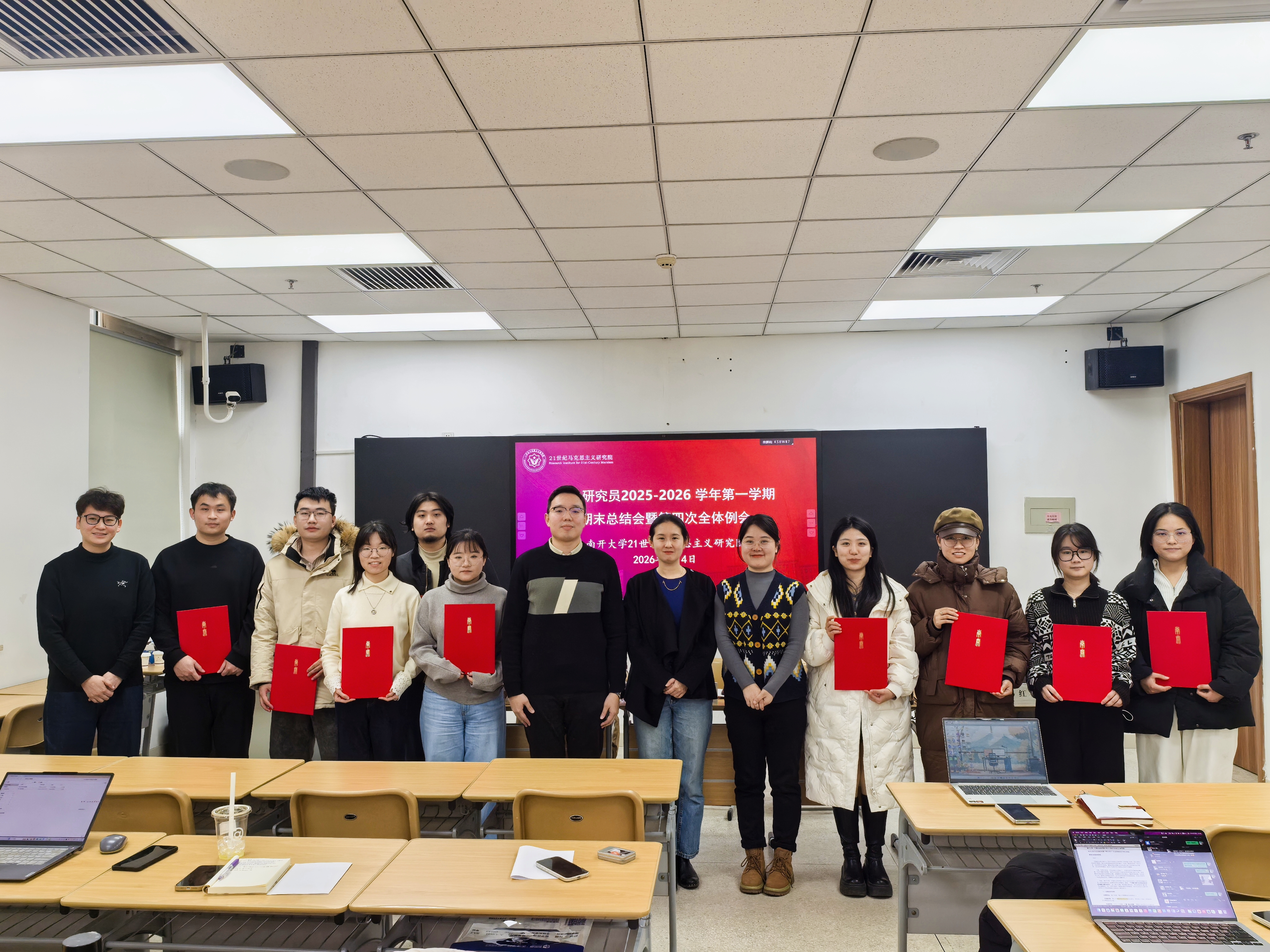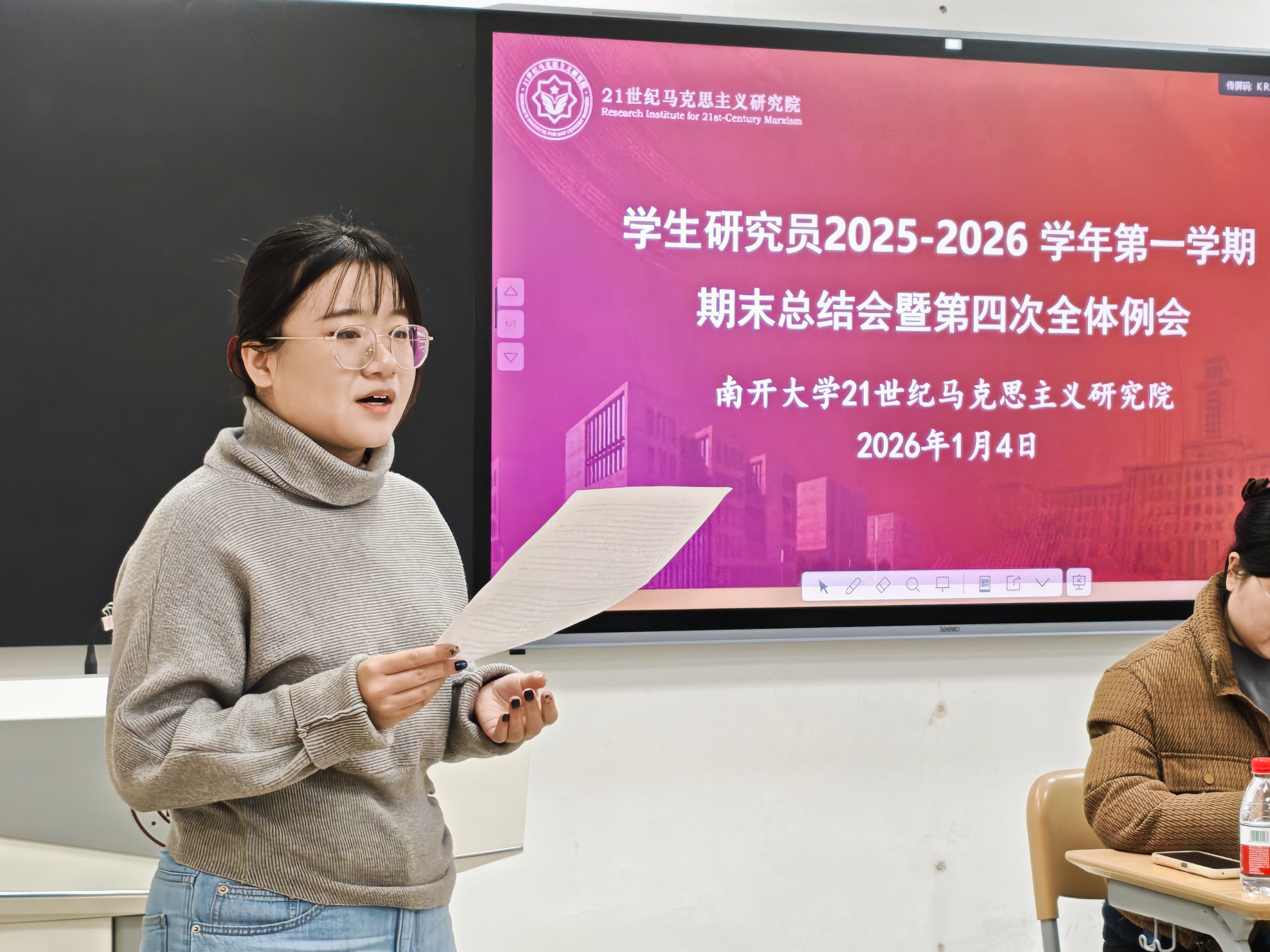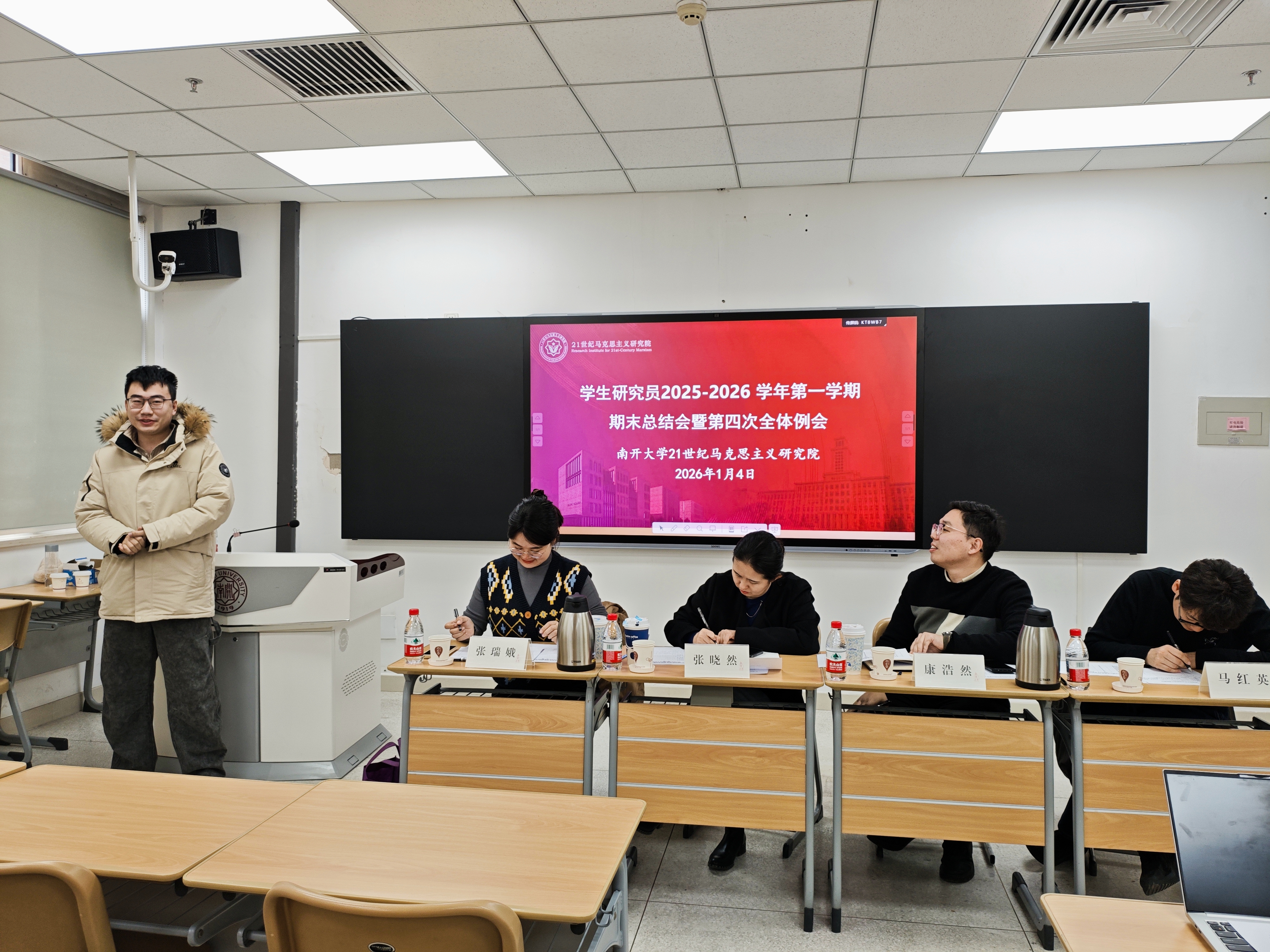 2026年1月4日,21世纪马克思主义研究院2025-2026学年第一学期末学生研究员期末总结会暨第四次全体例会在马克思主义学院召开。学生研究员指导教师张晓然、康浩然、张瑞娥出席会议,全体学生研究员参会,首席学生研究员马红英主持会议。